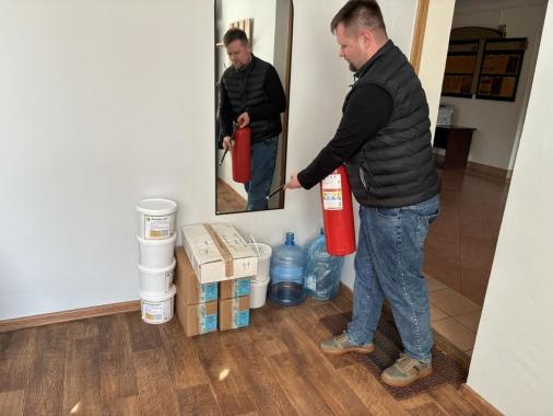 Была отработана вводная "пожар в административном здании, действия санитарного и пожарного звеньев".