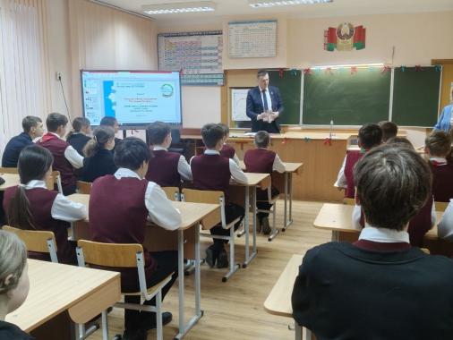 В ходе выступления Сергей Александрович поделился с ребятами о тезисах озвученных Президентом Республики Беларусь А. Г. Лукашенко, о Программе социально-экономического развития страны в 2026-2030 годах, о планах предприятия на указанный период, порядку приема и преференциям молодым специалистам предприятия.